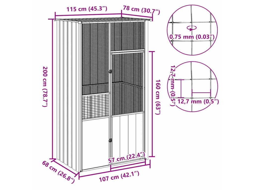 - Zváraný plot: Voliéra je vybavená zváraným plotom, ktorý zabraňuje nepleche a neočakávaným nehodám. Okrem toho vám umožňuje denne pozorovať vaše vtáky a zaručuje im široké zorné pole a dostatok čerstvého vzduchu.