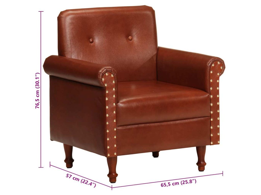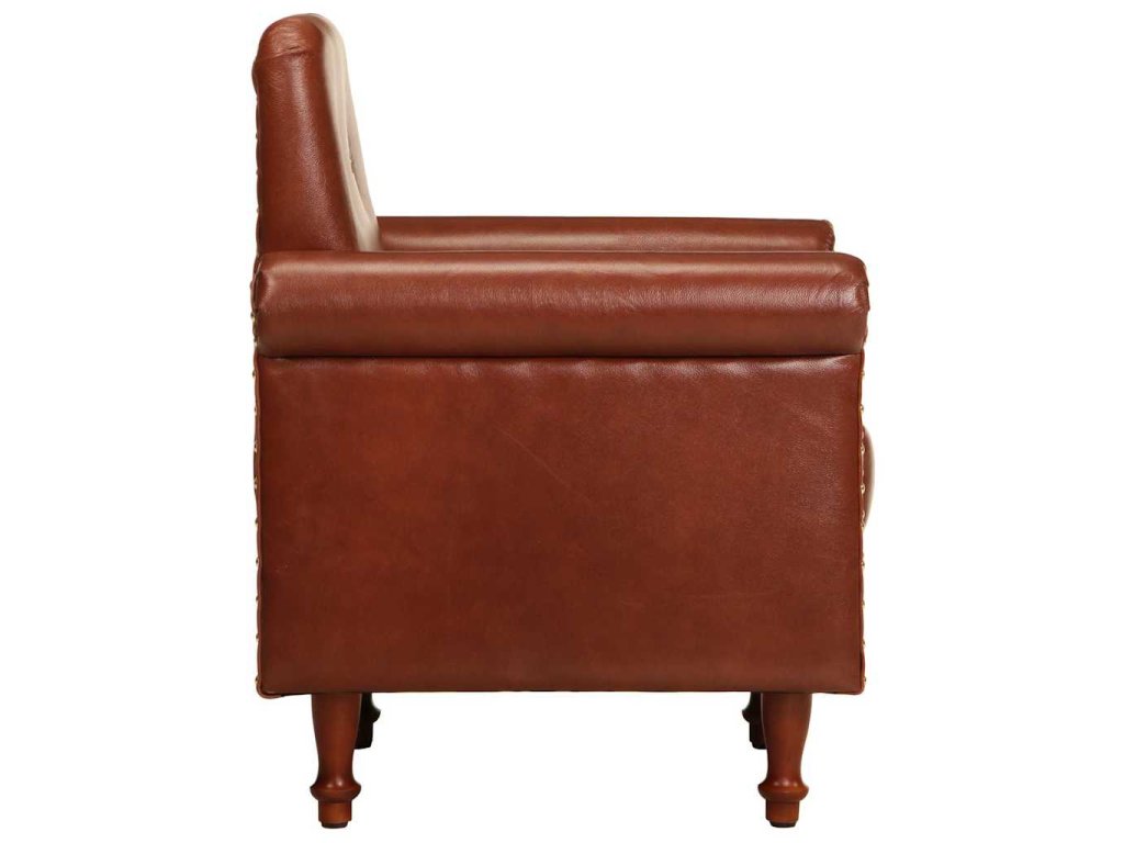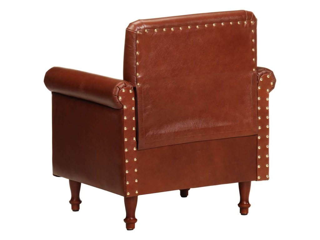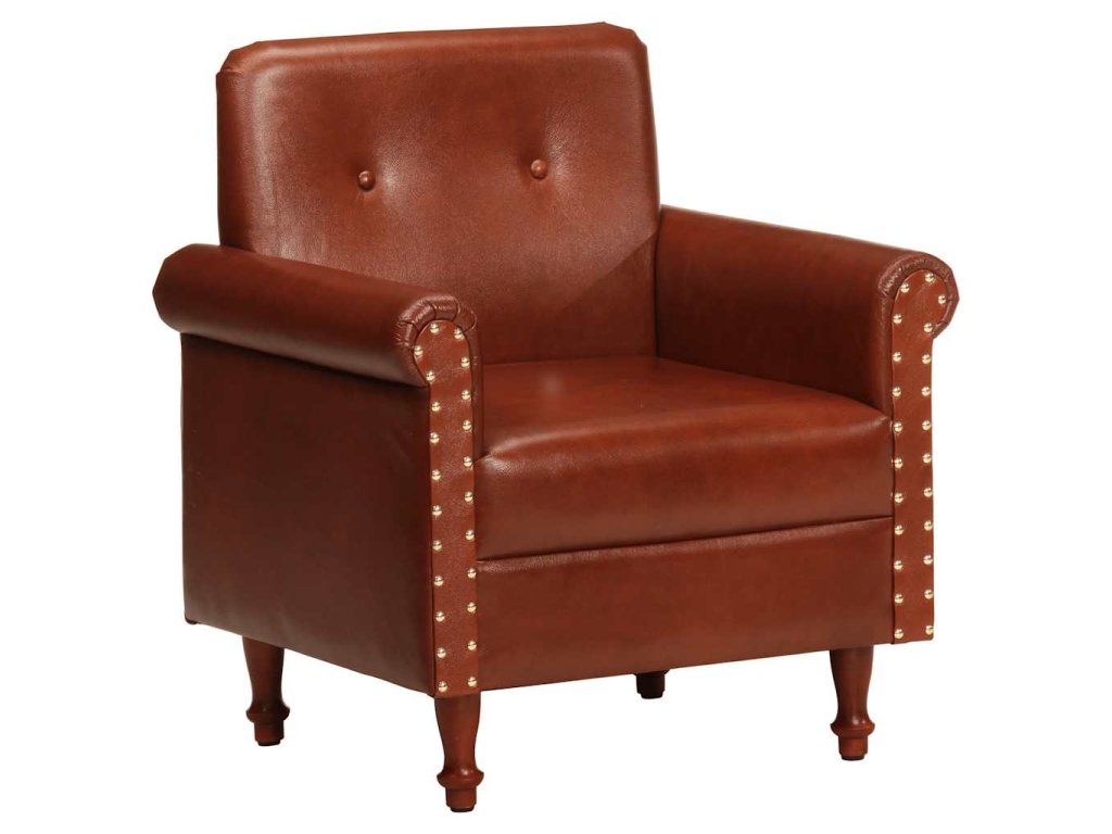Kožená pohovka je čalúnená mäkkou pravou hnedou kožou. Pre väčšie pohodlie je tiež hrubo polstrovaná. Nohy sú veľmi pevné a trvácne. Kreslo s úhľadne zaoblenými líniami vnesie do každého interiéru nádych luxusu, elegancie a štýlu. Či už si chcete pohovoriť s rodinou alebo si oddýchnuť pri knižke, sledovaní televízie či počúvaní hudby, toto kreslo vám poskytne dokonalé a pohodlné miesto na sedenie.