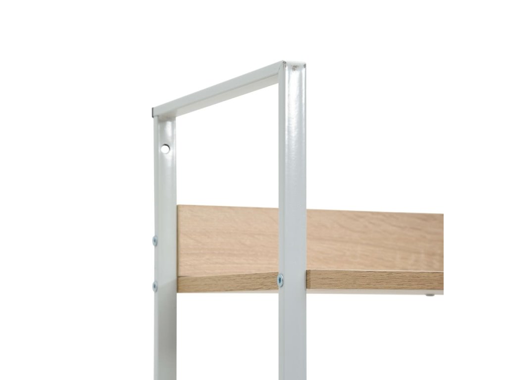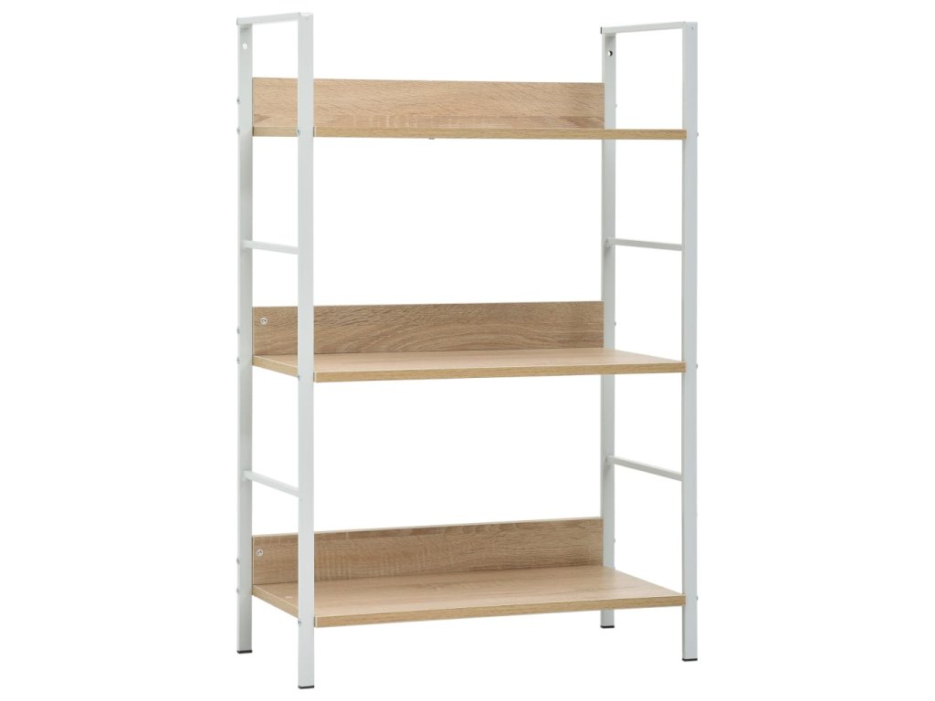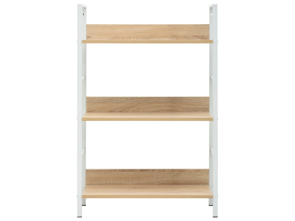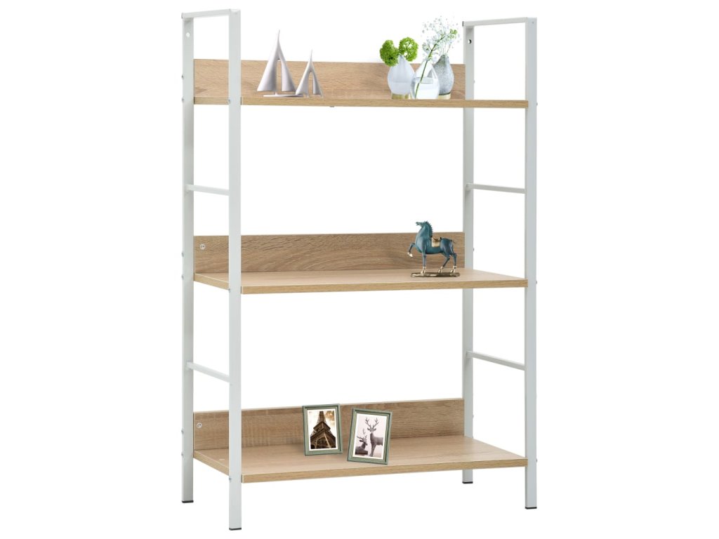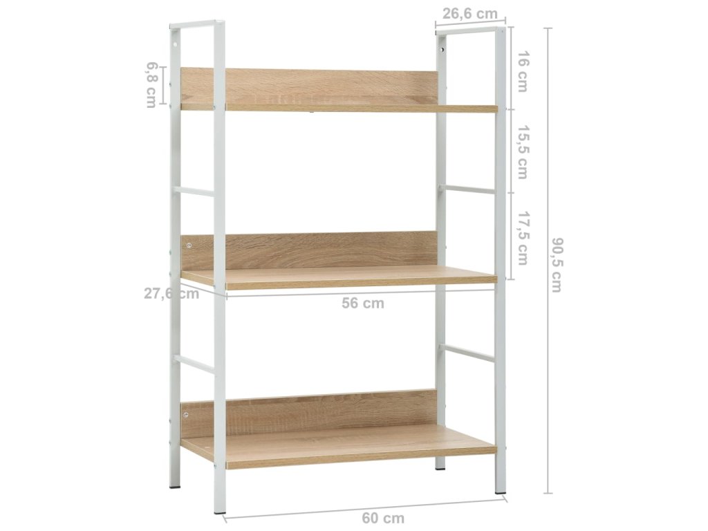Tento regál na knihy je vyrobený z kompozitného dreva, takže sa dá ľahko očistiť navlhčenou handričkou. Robustná oceľová konštrukcia je odolná voči hrdzi a umocňuje industriálny štýl regálu. Úložný regál má kompaktný dizajn, a preto sa skvele hodí do menších priestorov. Skrinka má 3 police, ktoré poskytujú množstvo priestoru na odkladanie a vystavenie zbierky kníh, kvetov, CD, DVD či rôznych dekoratívnych predmetov.