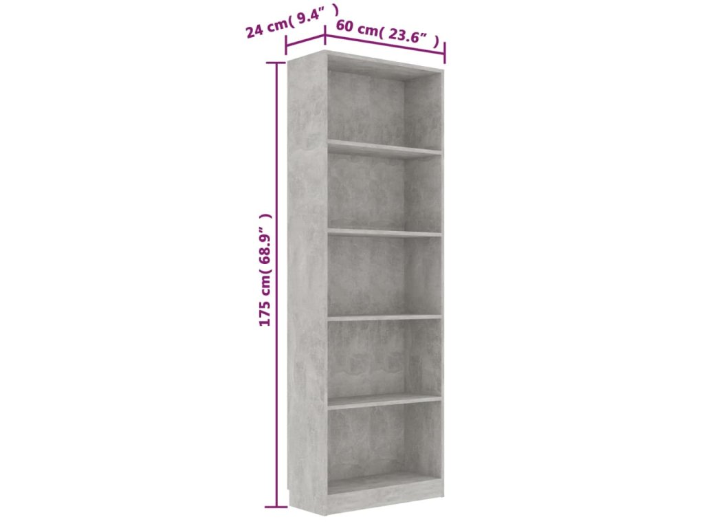 Knižnica je vyrobená z kvalitného kompozitného dreva, vďaka čomu je stabilná a trvácna. Vysoká knižnica s piatimi priestrannými poličkami poskytuje množstvo miesta na odkladanie či vystavenie rôznych predmetov, ako napríklad zberateľských kúskov, kníh, zarámovaných fotiek či iných drobností.