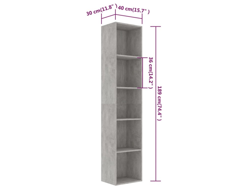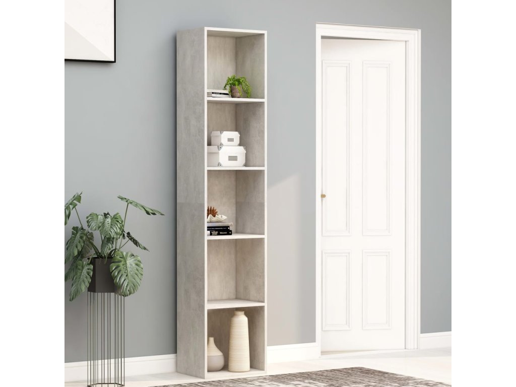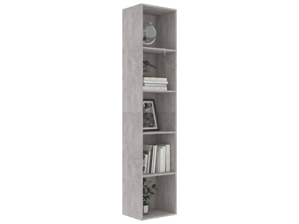 Knižnica je vyrobená z kvalitného kompozitného dreva, vďaka čomu je stabilná a trvácna. Vysoká knižnica s piatimi priestrannými poličkami poskytuje množstvo miesta na odkladanie či vystavenie rôznych predmetov, ako napríklad zberateľských kúskov, kníh, zarámovaných fotiek či iných drobností.