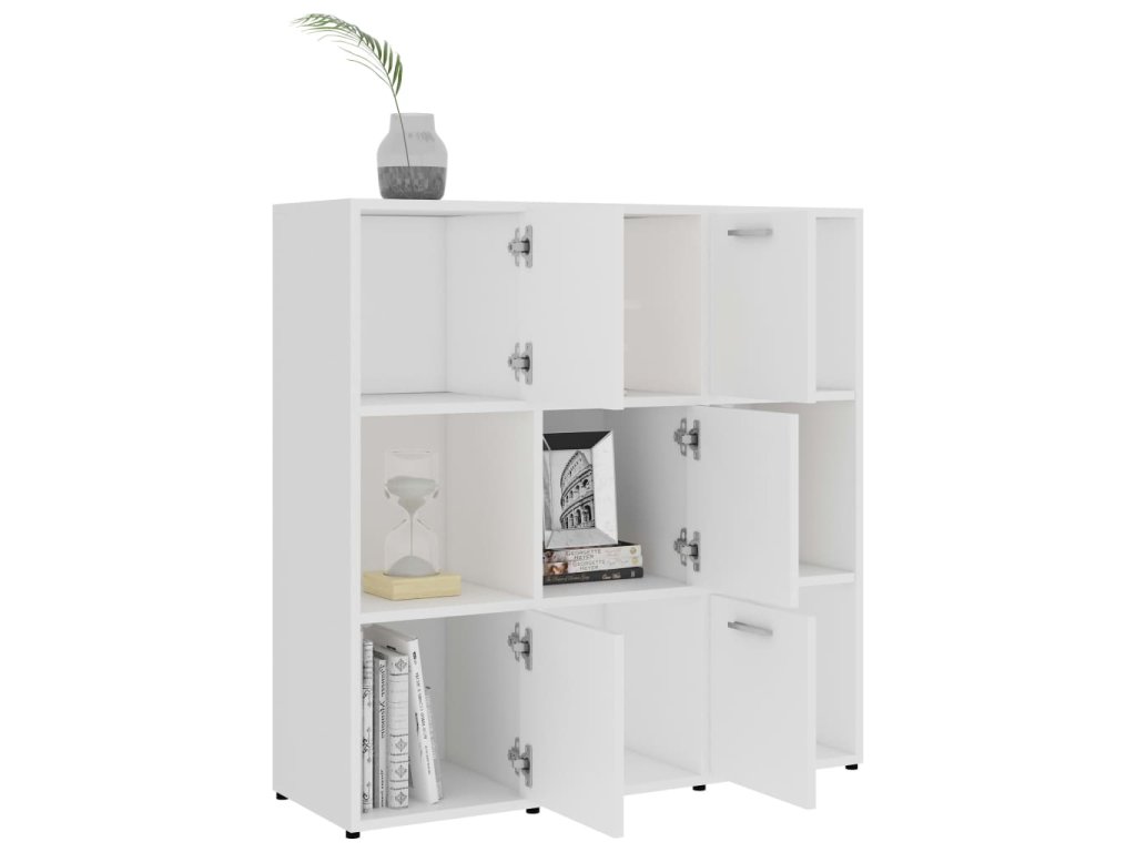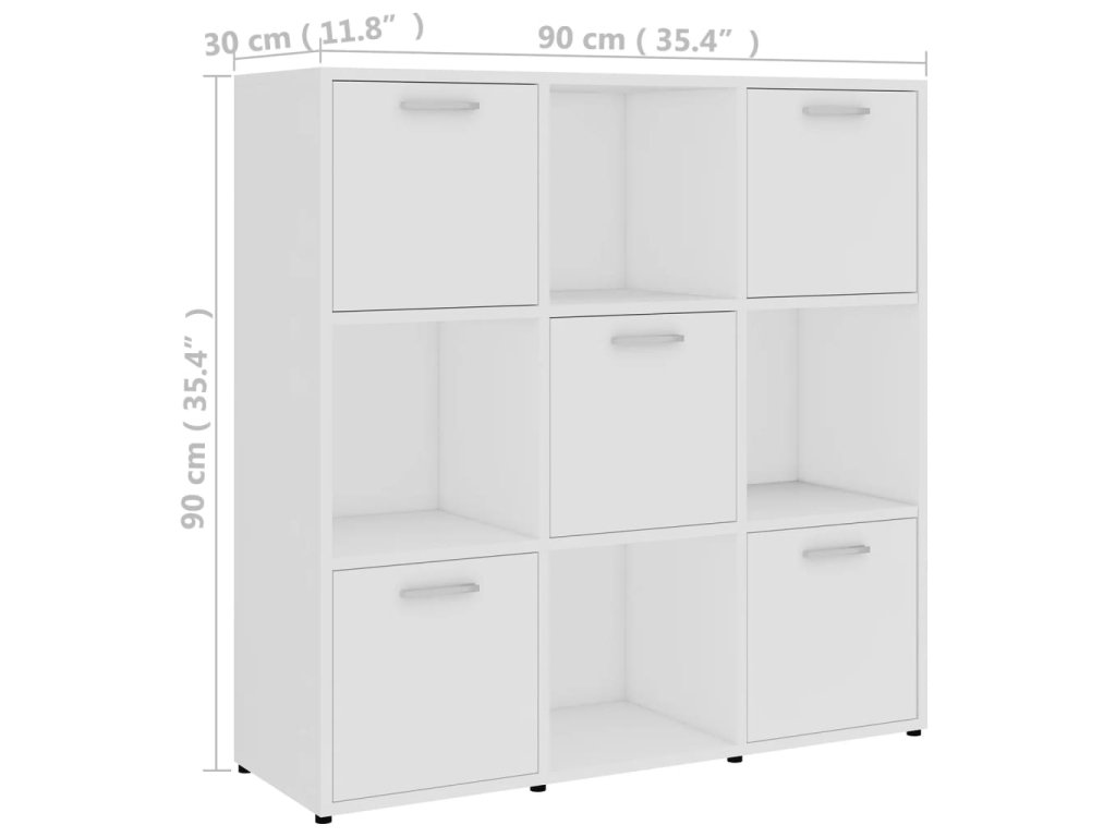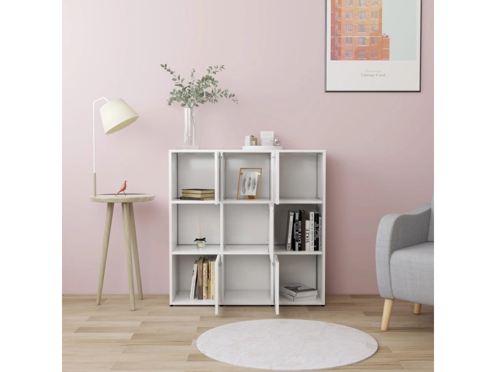 Skrinka je vyrobená z kvalitného kompozitného dreva, vďaka čomu je robustná, trvácna a má dlhú životnosť. Knižnica obsahuje 9 priečinkov, pričom 5 z nich má dvierka. Priečinky ponúkajú množstvo priestoru na prehľadné odkladanie časopisov, kníh, DVD, multimediálnych zariadení či rôznych dekoratívnych predmetov, ktoré tak budete mať vždy poruke. Knižnica sa dá ľahko očistiť navlhčenou handričkou.