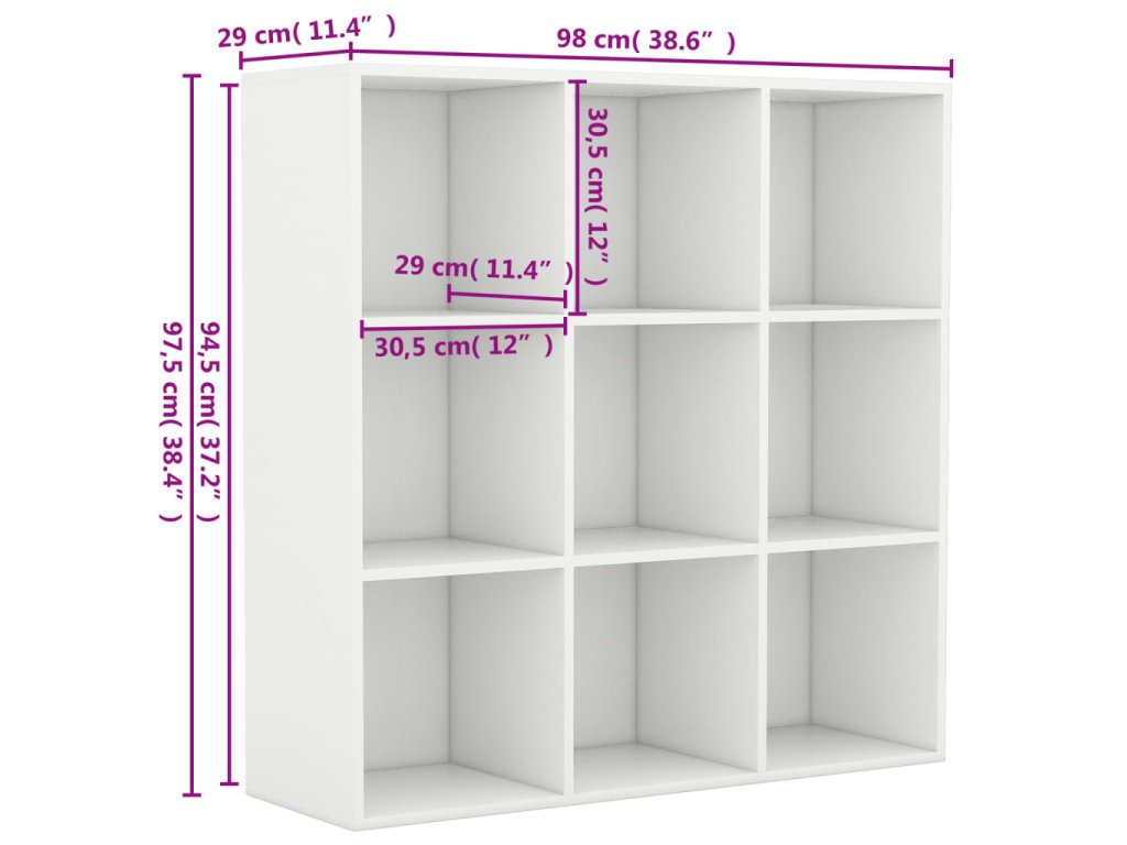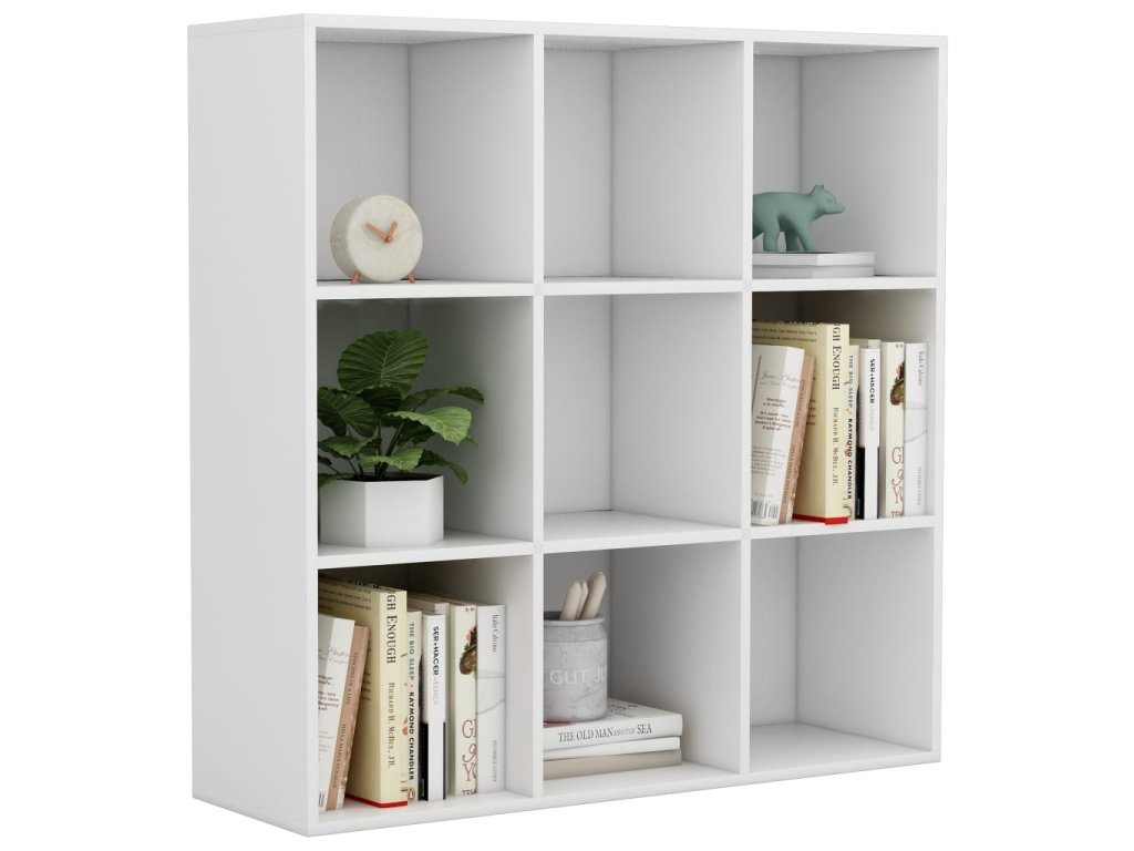 Skrinka je vyrobená z kvalitného kompozitného dreva, vďaka čomu je robustná, trvácna a má dlhú životnosť. Knižnica obsahuje 9 priestranných priečinkov, a tak poskytuje množstvo úložného priestoru na prehľadné odkladanie časopisov, kníh, DVD, multimediálnych zariadení či rôznych dekoratívnych predmetov, ktoré tak budete mať vždy poruke. Knižnica sa dá ľahko očistiť navlhčenou handričkou.