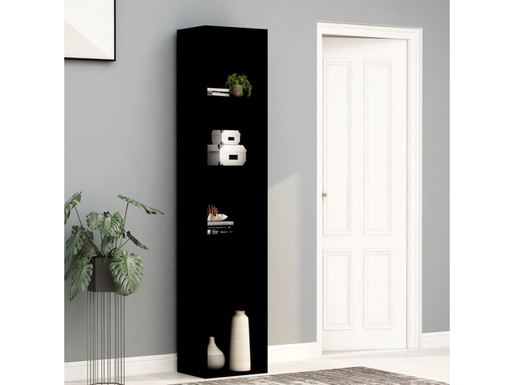 Knižnica je vyrobená z kvalitného kompozitného dreva, vďaka čomu je stabilná a trvácna. Vysoká knižnica s piatimi priestrannými poličkami poskytuje množstvo miesta na odkladanie či vystavenie rôznych predmetov, ako napríklad zberateľských kúskov, kníh, zarámovaných fotiek či iných drobností.