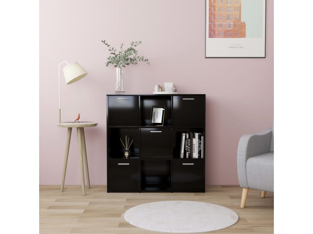 Skrinka je vyrobená z kvalitného kompozitného dreva, vďaka čomu je robustná, trvácna a má dlhú životnosť. Knižnica obsahuje 9 priečinkov, pričom 5 z nich má dvierka. Priečinky ponúkajú množstvo priestoru na prehľadné odkladanie časopisov, kníh, DVD, multimediálnych zariadení či rôznych dekoratívnych predmetov, ktoré tak budete mať vždy poruke. Knižnica sa dá ľahko očistiť navlhčenou handričkou.