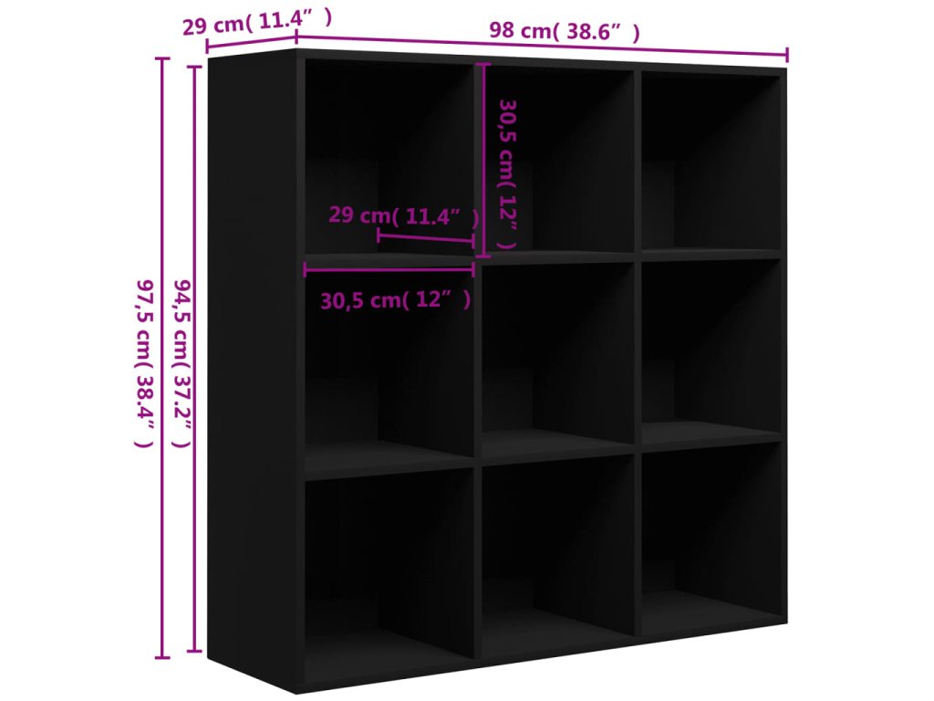 Skrinka je vyrobená z kvalitného kompozitného dreva, vďaka čomu je robustná, trvácna a má dlhú životnosť. Knižnica obsahuje 9 priestranných priečinkov, a tak poskytuje množstvo úložného priestoru na prehľadné odkladanie časopisov, kníh, DVD, multimediálnych zariadení či rôznych dekoratívnych predmetov, ktoré tak budete mať vždy poruke. Knižnica sa dá ľahko očistiť navlhčenou handričkou.