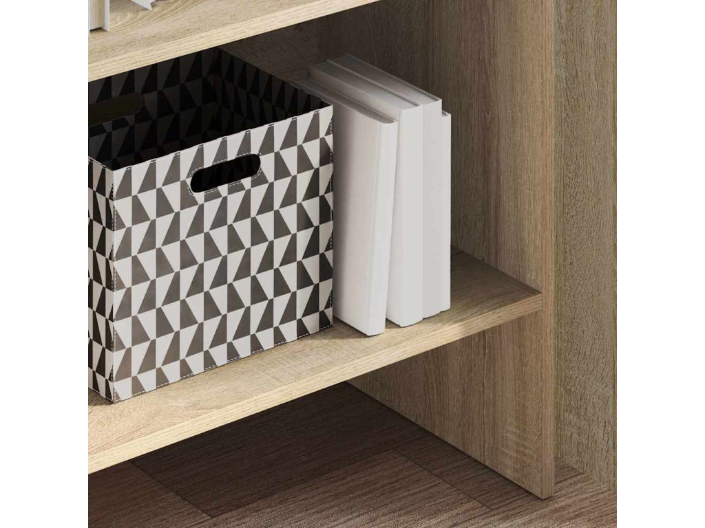 Táto knižnica je vyrobená z kompozitného dreva, vďaka čomu je pevná, trvácna a má dlhú životnosť. Je vybavená 5 veľkými priečinkami, ktoré ponúkajú dostatok priestoru na odkladanie kníh, časopisov a rôznych dekoratívnych predmetov. Knižnica sa navyše dá ľahko očistiť navlhčenou handričkou.