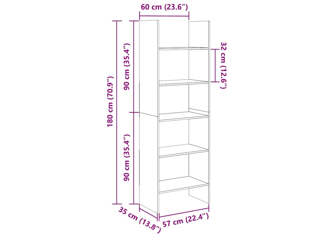 - Rozmery: 60 x 35 x 180 cm (Š x H x V)