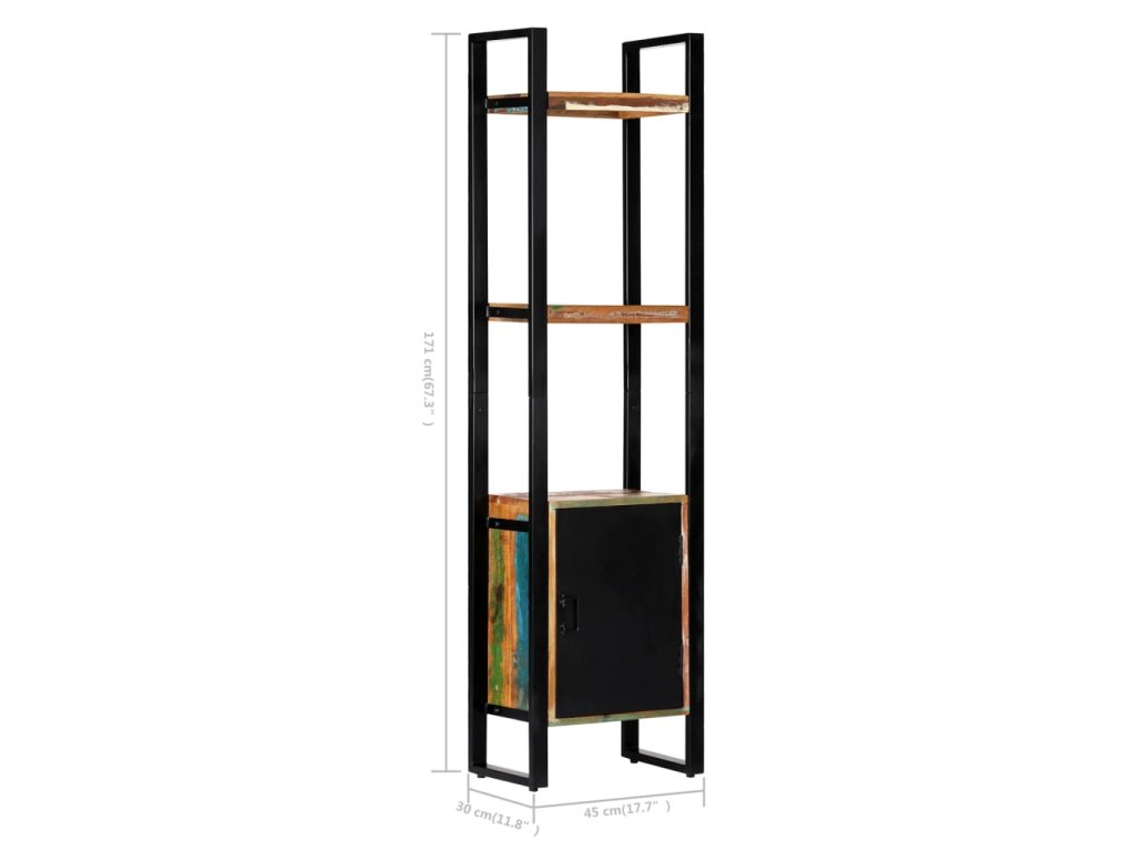 Knižnica je vyrobená z recyklovaného masívu, ktorý pochádza z trámov, podláh a nosníkov zo starých zbúraných stavieb a pozostáva z rôznych typov dreva, ako napríklad borovicového, tíkového, bukového, dubového, cédrového, mangového či akáciového dreva. Recyklované drevo sa vyznačuje všetkými vlastnosťami týchto typov dreva. Je staré, zvetrané a usušené, a preto sa nezmršťuje ani neohýba. Každý krok výrobného procesu sa vykonáva s maximálnou starostlivosťou, či už je to leštenie, natieranie alebo lakovanie. Vďaka vynikajúcemu remeselnému opracovaniu a krásnej textúre dreva je každý kus nábytku jedinečný a trochu odlišný od ostatných. Komoda pozostáva z 1 skrinky s dvierkami a 3 poličkami, a tak poskytuje ideálne miesto na odkladanie či vystavenie vašej zbierky kníh, časopisov, dokumentov a rôznych ozdobných predmetov, ako napríklad rámikov s fotkami či zberateľských kúskov. Montáž je jednoduchá.