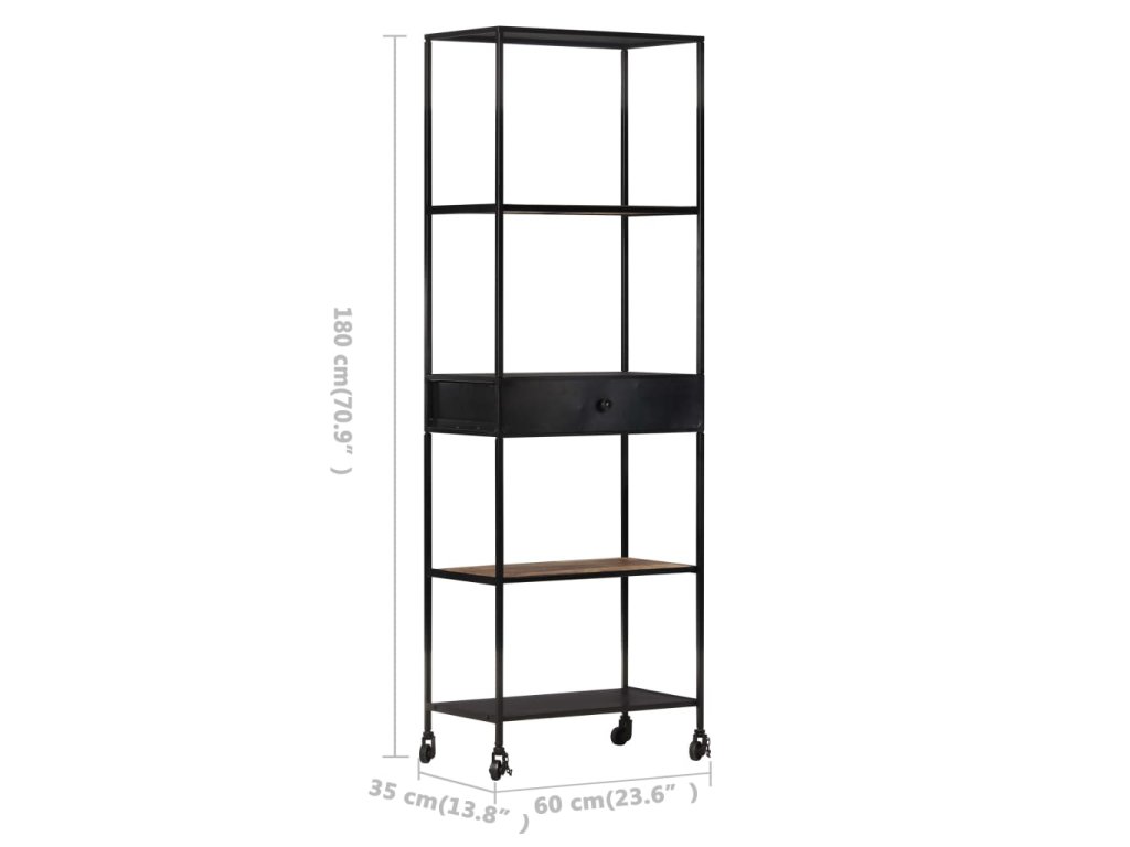 Skrinka na knihy je vyrobená zo surového mangovníkového dreva, tropického tvrdého dreva s dostatočnou silou na to, aby uniesla značné zaťaženie. Je aj trvácna, stabilná a odolná. Vďaka remeselnému spracovaniu a krásnej štruktúre dreva je každý kus nábytku jedinečný a mierne odlišný od ostatných kusov. Táto knižnica má 4 police a 1 zásuvku, a ponúka dostatok miesta na usporiadanie a uloženie vašich časopisov, kníh, DVD, multimediálnych zariadení a iných dekoratívnych predmetov. Tento stojan na knihy sa navyše ľahko čistí vlhkou handričkou.