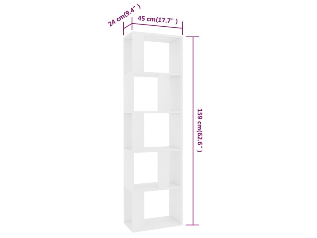 Skrinka je vyrobená z kvalitného kompozitného dreva, vďaka čomu je robustná, trvácna a má dlhú životnosť. Knižnica obsahuje 5 priestranných priečinkov, a tak poskytuje množstvo úložného priestoru na prehľadné odkladanie časopisov, kníh, DVD, multimediálnych zariadení či rôznych dekoratívnych predmetov, ktoré tak budete mať vždy poruke. Regál na knihy je naozaj všestranný a môže poslúžiť aj ako deliaca stena, takže predstavuje perfektný doplnok do chodby či iných miestností.
