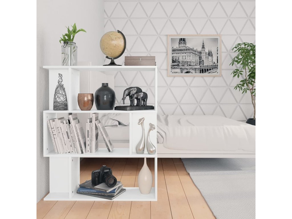 Skrinka je vyrobená z kompozitného dreva, vďaka čomu je robustná, trvácna a má dlhú životnosť. Knižnica obsahuje 3 priestranné priečinky a 6 menších priečinkov, a tak poskytuje množstvo úložného priestoru na prehľadné odkladanie časopisov, kníh, DVD, multimediálnych zariadení či rôznych dekoratívnych predmetov, ktoré tak budete mať vždy poruke. Regál na knihy je naozaj všestranný a môže poslúžiť aj ako deliaca stena, takže predstavuje perfektný doplnok do chodby či iných miestností.