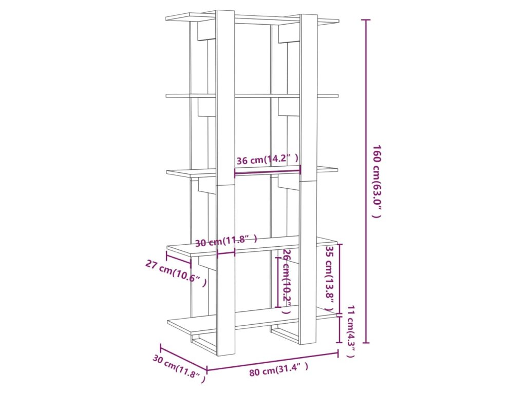 Regál na knihy je vyrobený z kvalitného kompozitného dreva, vďaka čomu je stabilný a dá sa ľahko očistiť navlhčenou handričkou. Knižnica poskytuje množstvo úložného priestoru na prehľadné odkladanie časopisov, kníh, DVD, multimediálnych zariadení či rôznych dekoratívnych predmetov, ktoré tak budete mať vždy poruke. Táto všestranná knižnica navyše môže poslúžiť aj ako deliaca stena, a tak predstavuje perfektný doplnok do chodby a ďalších miestností.
