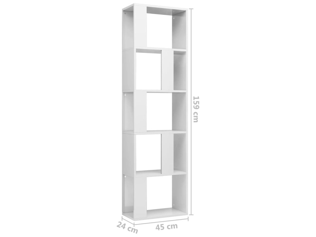 Skrinka je vyrobená z kvalitného kompozitného dreva, vďaka čomu je robustná, trvácna a má dlhú životnosť. Knižnica obsahuje 5 priestranných priečinkov, a tak poskytuje množstvo úložného priestoru na prehľadné odkladanie časopisov, kníh, DVD, multimediálnych zariadení či rôznych dekoratívnych predmetov, ktoré tak budete mať vždy poruke. Regál na knihy je naozaj všestranný a môže poslúžiť aj ako deliaca stena, takže predstavuje perfektný doplnok do chodby či iných miestností.