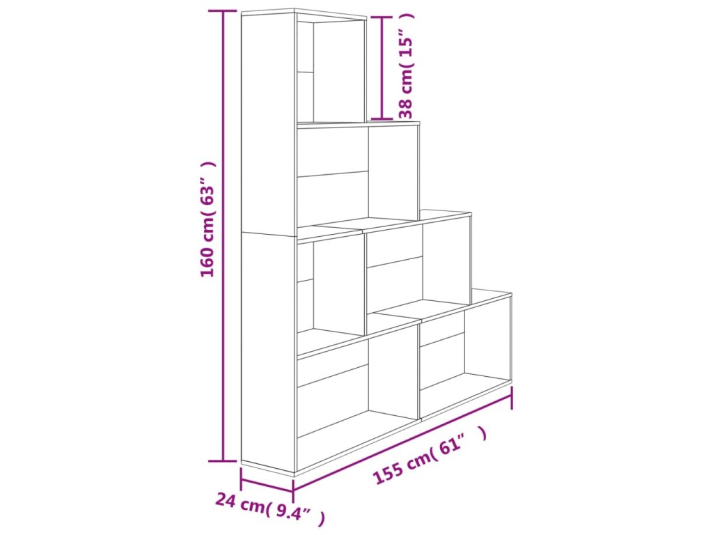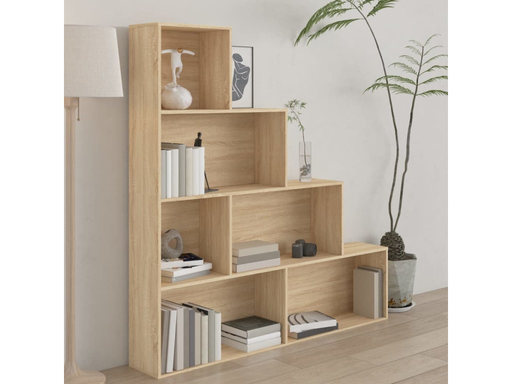 Skrinka je vyrobená z kvalitného kompozitného dreva, vďaka čomu je robustná, trvácna a má dlhú životnosť. Knižnica so 6 priestrannými otvorenými policami ponúka množstvo priestoru na prehľadné odkladanie časopisov, kníh, DVD, multimediálnych zariadení či rôznych dekoratívnych predmetov, ktoré tak budete mať vždy poruke. Regál na knihy je naozaj všestranný a môže poslúžiť aj ako deliaca stena, takže predstavuje perfektný doplnok do chodby či iných miestností.
