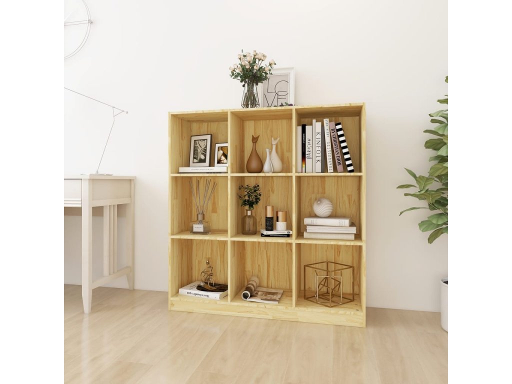 Stojan na knihy je vyrobený z masívneho borovicového dreva, vďaka čomu je pevný a stabilný. Polička na knihy je navrhnutá s 9 priestrannými priečinkami a ponúka dostatok úložného priestoru pre vaše časopisy, knihy, DVD, multimediálne zariadenia a iné dekoratívne predmety, ktoré sú dobre organizované a na dosah ruky. Navyše môže slúžiť aj ako priečka v miestnosti, vďaka čomu je ideálnou voľbou pre vašu chodbu a akýkoľvek iný obytný priestor. Stojan na knihy sa ľahko čistí vlhkou handričkou.