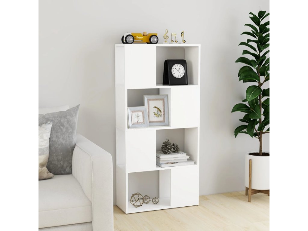 Konštrukcia regálu zaručuje jeho pevnosť, odolnosť a dlhodobú službu. Izbová priečka vybavená 4 priestrannými priehradkami ponúka dostatok úložného priestoru na prehľadné a dostupné uloženie časopisov, kníh, DVD, multimediálnych zariadení a iných dekoračných predmetov. Umiestnite policu na dobre osvetlené miesto a ponorte sa do svojej obľúbenej knihy!