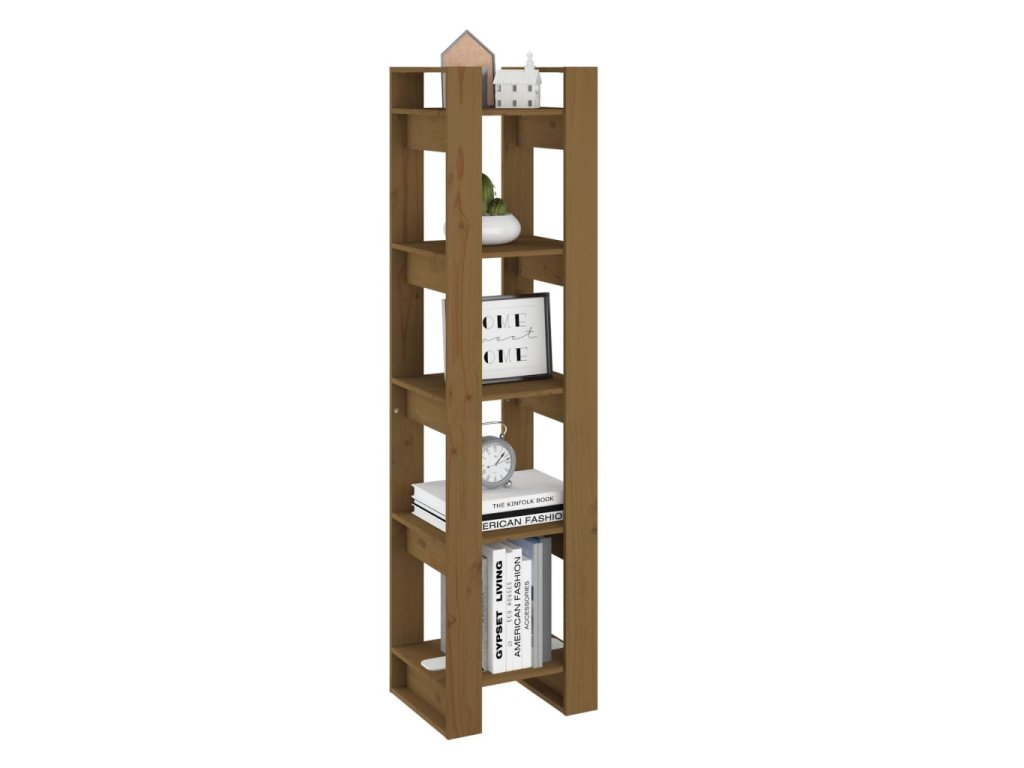 Stojan na knihy je vyrobený z masívneho borovicového dreva a je pevný a stabilný. Knižnica ponúka dostatok úložného priestoru pre vaše časopisy, knihy, DVD, multimediálne zariadenia a iné dekoratívne predmety, ktoré budú dobre zorganizované a na dosah. Táto knižnica nemá zadnú stranu a tak sú obe strany krásne. Môže slúžiť aj ako priečka do miestnosti, vďaka čomu je ideálnou voľbou pre vašu chodbu a akýkoľvek iný obytný priestor. Bočná skrinka sa dá ľahko očistiť navlhčenou handričkou.