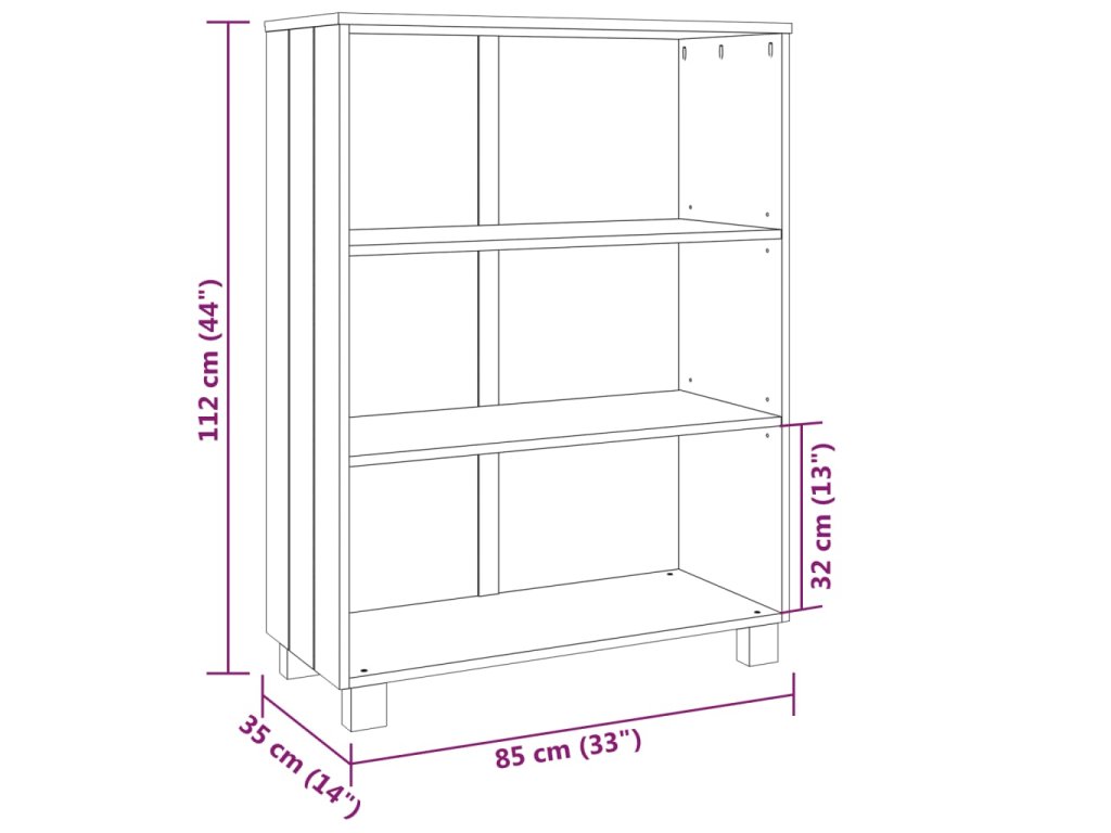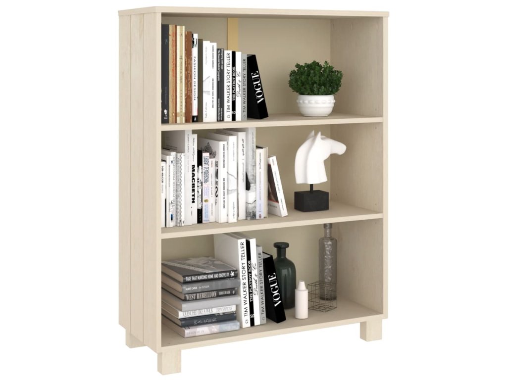 Knižnica je vyrobená z masívneho borovicového dreva, vďaka čomu je stabilná a pevná. Knižnica má 3 police, ktoré poskytujú dostatok úložného priestoru na úhľadne usporiadané zbierky kníh, časopisov a dokumentov. Pevná doska je ideálna na vystavenie dekoratívnych predmetov, fotorámikov a rastlín v črepníkoch.