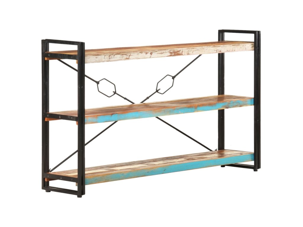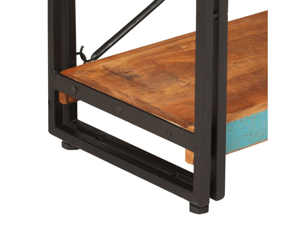 Knižnica má pevný oceľový rám s práškovou povrchovou úpravou, ktorý jej dodáva industriálny vzhľad. Retro poličky sú vyrobené z recyklovaného masívu, ktorý pochádza z trámov, podláh a nosníkov zo starých zbúraných stavieb a pozostáva z rôznych typov dreva, ako napríklad borovicového, teakového, bukového, dubového, mangovníkového či akáciového dreva. Recyklované drevo sa preto vyznačuje vlastnosťami týchto typov dreva. Drevo je staré, zvetrané a usušené, a preto sa nezmršťuje ani neohýba. Každý krok výrobného procesu sa vykonáva s maximálnou starostlivosťou, či už je to leštenie, natieranie alebo lakovanie. Vďaka remeselnému spracovaniu a pôsobivej textúre dreva je každý kus nábytku jedinečný a trochu odlišný od ostatných kusov.
