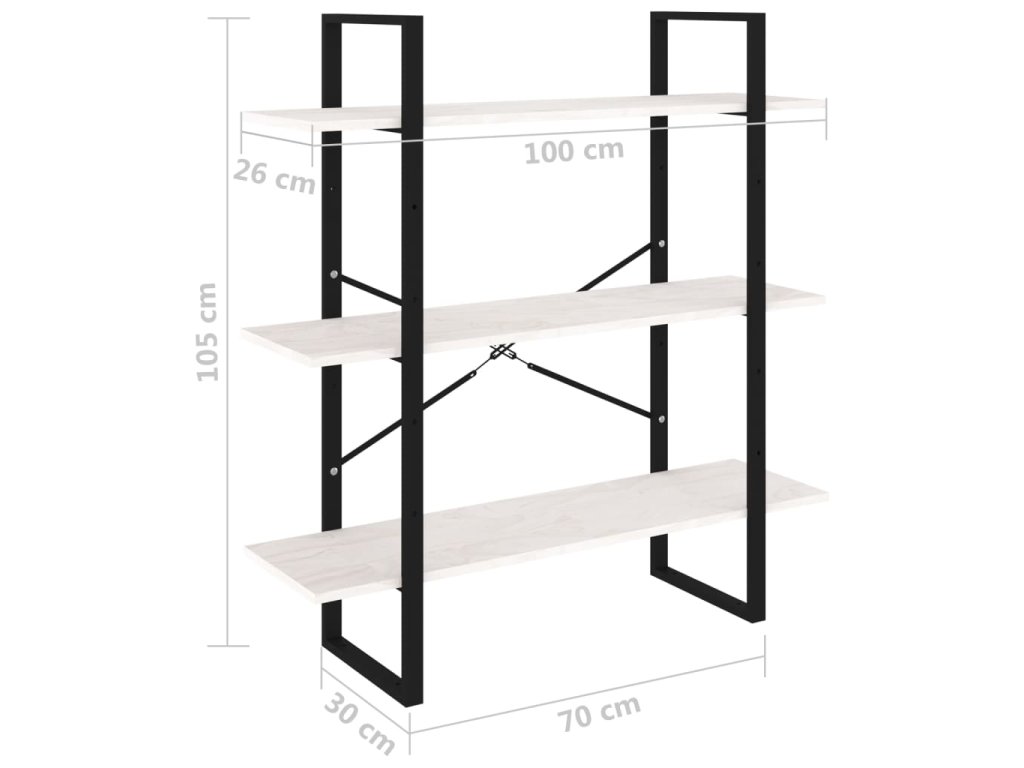 Táto knižnica je vyrobená z borovicového dreva, čo zaručuje jej odolnosť, trvácnosť a dlhodobú životnosť. Je vybavená 3 poličkami a ponúka dostatok úložného priestoru na umiestnenie rôznych predmetov alebo dekorácií. Knižnica sa ľahko čistí vlhkou handričkou.