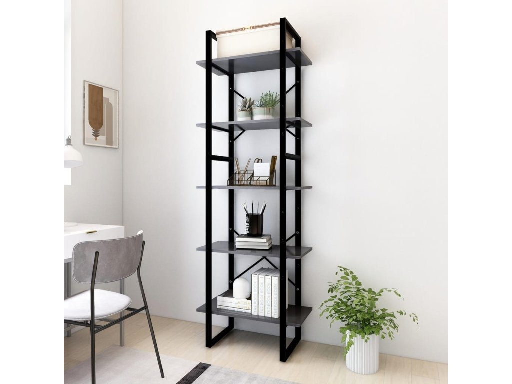 Knižnica je vyrobená z kvalitného kompozitného dreva a kovového rámu, vďaka čomu je pevná, trvácna a má dlhú životnosť. Je vybavená 5 poličkami, ktoré ponúkajú dostatok priestoru na odkladanie kníh, časopisov a rôznych dekoratívnych predmetov. Knižnica sa dá ľahko očistiť vlhkou handričkou.