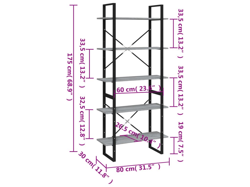 - Veľký úložný priestor: Táto knižnica má 5 políc, ktoré ponúkajú dostatok úložného priestoru na uloženie kníh, časopisov a iných dekoratívnych predmetov.