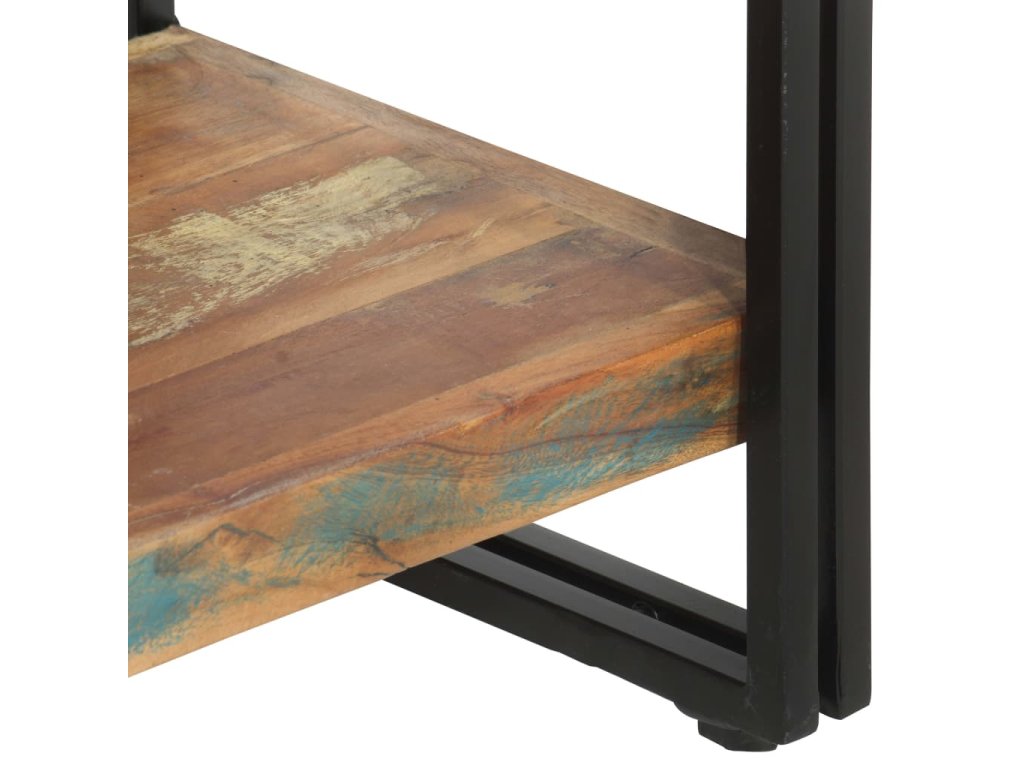 Knižnica má oceľový rám s práškovou povrchovou úpravou, ktorý jej dodáva industriálny vzhľad. Poličky sú vyrobené z recyklovaného masívu, ktorý je pevný, trvácny a krásny, a profesionálne opracovanie len umocňuje ich pôsobivý retro vzhľad. Recyklované drevo má podobné vlastnosti ako iné druhy dreva, napríklad tíkové, mangové, akáciové drevo a podobne. Je staré, zvetrané a usušené, a preto sa nezmršťuje ani neohýba. Každý krok výrobného procesu sa vykonáva s maximálnou starostlivosťou, či už je to leštenie, natieranie alebo lakovanie. Vďaka remeselnému opracovaniu a krásnej textúre dreva je každý kus nábytku jedinečný a trochu odlišný od ostatných.