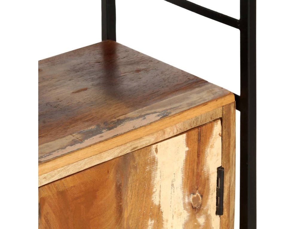 Knižnica má pevný železný rám s práškovou povrchovou úpravou, ktorý jej dodáva indstriálny vzhľad. Retro poličky sú vyrobené z recyklovaného masívu, ktorý pochádza z trámov, podláh a nosníkov zo starých zbúraných stavieb a pozostáva z rôznych typov dreva, ako napríklad borovicového, tíkového, bukového, dubového, cédrového, mangového či akáciového dreva. Recyklované drevo sa preto vyznačuje vlastnosťami týchto typov dreva. Recyklované drevo je staré, zvetrané a usušené, a preto sa nezmršťuje ani neohýba. Každý krok výrobného procesu sa vykonáva s maximálnou starostlivosťou, či už je to leštenie, natieranie alebo lakovanie. Vďaka remeselnému opracovaniu a pôsobivej textúre dreva je každý kus nábytku jedinečný a trochu odlišný od ostatných.