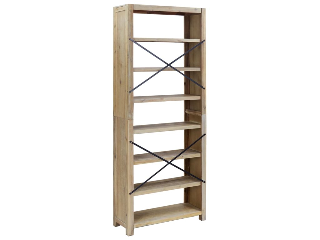 - Odolný materiál: Polica na knihy je vyrobená z masívneho akáciového dreva, MDF a akáciovej dyhy, vďaka čomu je veľmi odolná a odolná.