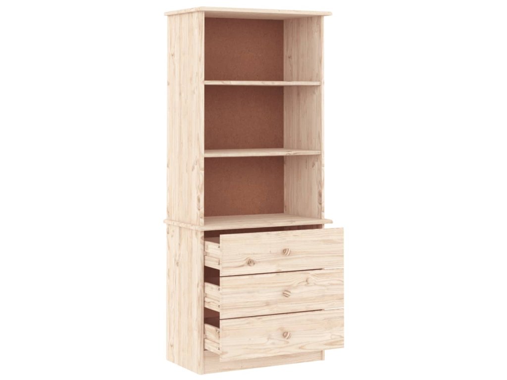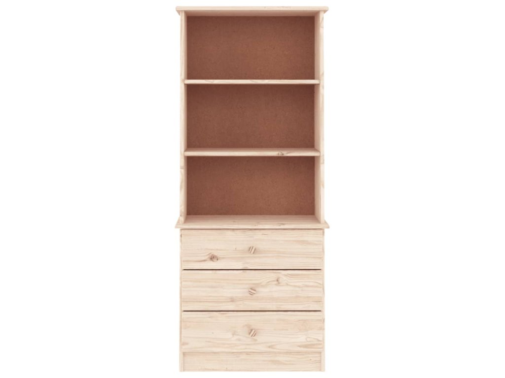 - Borovicový masív: Borovicový masív je krásny prírodný materiál. Borovicové drevo má rovnú kresbu a nachádzajú sa na ňom uzly, ktoré tomuto materiálu dodávajú charakteristický rustikálny vzhľad. Regál na knihy je vyrobený z masívneho borovicového dreva a je odolný a pevný.