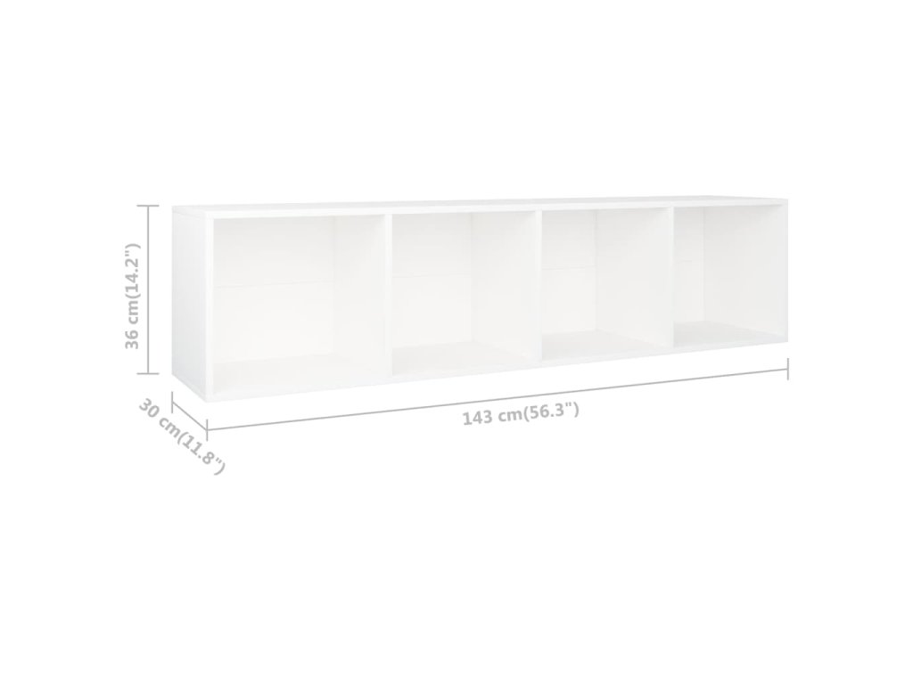 Skrinka je vyrobená z kompozitného dreva, vďaka čomu je robustná, trvácna a má dlhú životnosť. Knižnica obsahuje 4 priečinky, a tak poskytuje množstvo úložného priestoru na prehľadné odkladanie časopisov, kníh, DVD a multimediálnych zariadení, ktoré tak budete mať vždy poruke. Regál na knihy je naozaj všestranný a dá sa postaviť aj do vodorovnej polohy ako TV skrinka, takže predstavuje perfektný doplnok do vášho bývania.