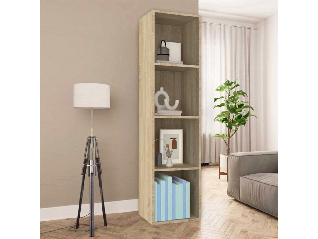 Skrinka je vyrobená z kompozitného dreva, vďaka čomu je robustná, trvácna a má dlhú životnosť. Knižnica obsahuje 4 priečinky, a tak poskytuje množstvo úložného priestoru na prehľadné odkladanie časopisov, kníh, DVD a multimediálnych zariadení, ktoré tak budete mať vždy poruke. Regál na knihy je naozaj všestranný a dá sa postaviť aj do vodorovnej polohy ako TV skrinka, takže predstavuje perfektný doplnok do vášho bývania.
