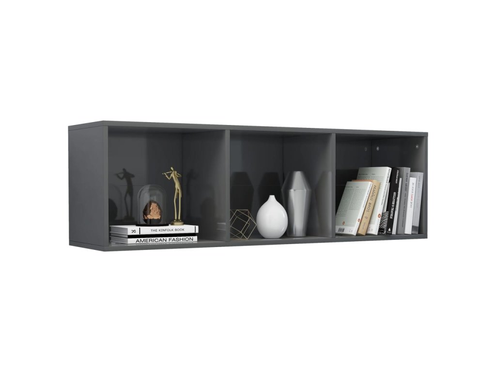 Skrinka je vyrobená z kompozitného dreva, vďaka čomu je robustná, trvácna a má dlhú životnosť. Knižnica obsahuje 3 priečinky, a tak poskytuje množstvo úložného priestoru na prehľadné odkladanie časopisov, kníh, DVD a multimediálnych zariadení, ktoré tak budete mať vždy poruke. Regál na knihy je naozaj všestranný a dá sa postaviť aj do vodorovnej polohy ako TV skrinka, takže predstavuje perfektný doplnok do vášho bývania.