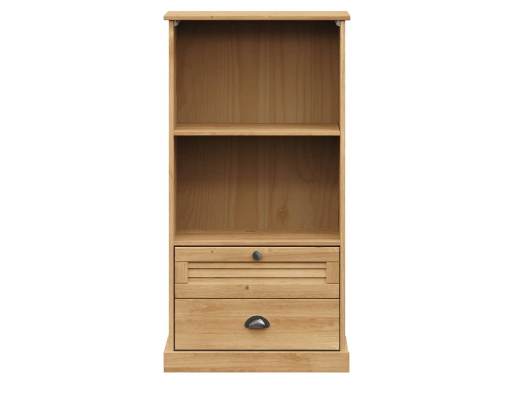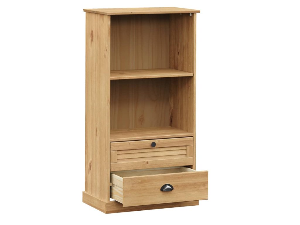- Borovicový masív: Borovicový masív je krásny prírodný materiál. Borovicové drevo má rovnú kresbu a nachádzajú sa na ňom uzly, ktoré tomuto materiálu dodávajú charakteristický rustikálny vzhľad. Regál na knihy je vyrobený z masívneho borovicového dreva a je odolný a pevný.
