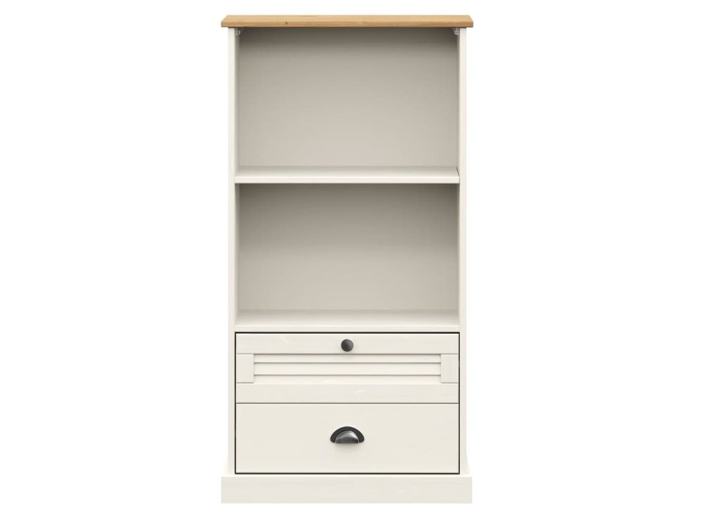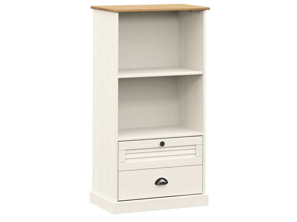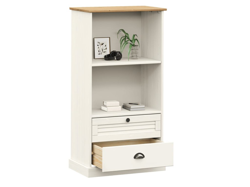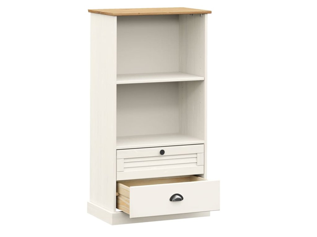 - Borovicový masív: Borovicový masív je krásny prírodný materiál. Borovicové drevo má rovnú kresbu a nachádzajú sa na ňom uzly, ktoré tomuto materiálu dodávajú charakteristický rustikálny vzhľad. Regál na knihy je vyrobený z masívneho borovicového dreva a je odolný a pevný.