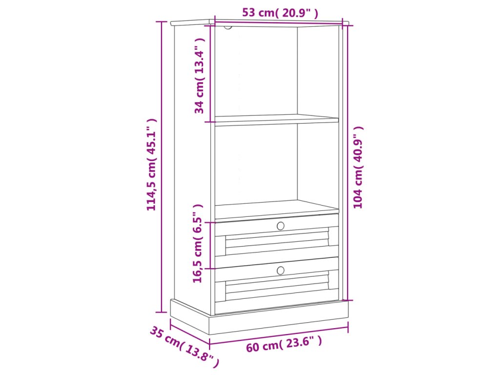 - Rozmery: 60 x 35 x 114,5 cm (Š x H x V)