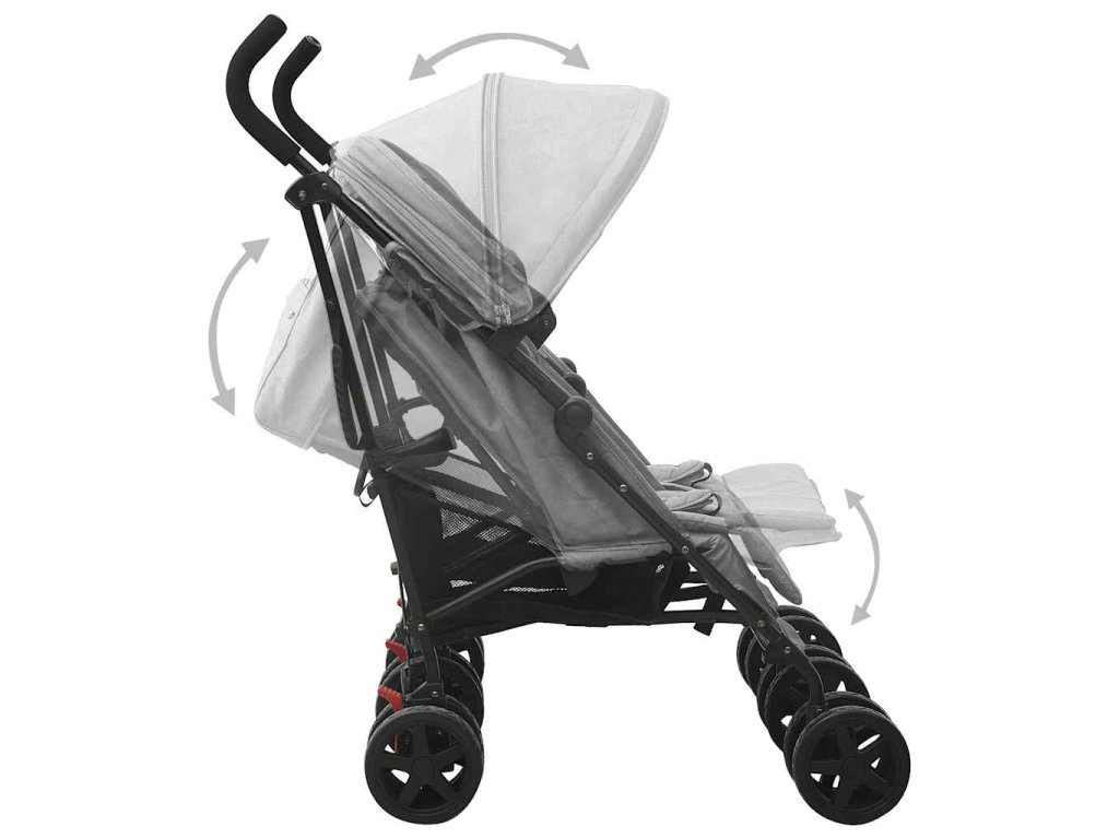 Opierku chrbta tohto kočíka pre dvojičky možno nastaviť do 4 polôh, takže vaše dieťa si vždy nájde tú najpohodlnejšiu polohu. Nastaviteľná je aj opierka nôh. Skladacia strieška chráni deti pred slnečným žiarením a UV žiarením. Priložený košík je vhodný na uloženie vecí, ako sú plienky, deky alebo hračky. Tento kočík pre dvojičky možno tiež jednou rukou plynulým pohybom zložiť a rozložiť, čo uľahčuje jeho prepravu.