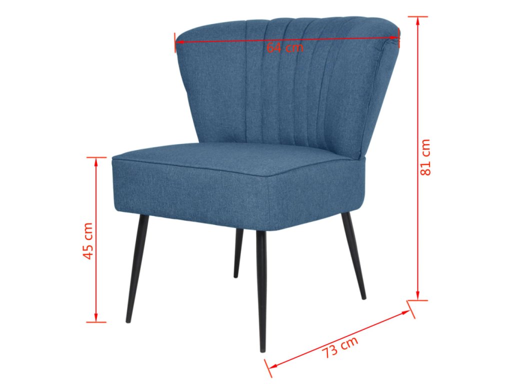 Čalúnené sedadlo a operadlo majú hustú molitanovú výplň a celá stolička je potiahnutá mäkkou látkou. Pevný rám je vyrobený z preglejky a borovicového dreva. Štyri oceľové nohy zabezpečujú pevnú konštrukciu. Táto štýlová kokteilová stolička predstavuje skvelý doplnok do domácnosti!