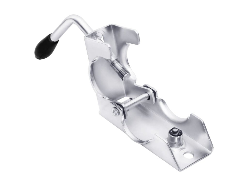 - Praktická svorka: Svorka je vybavená gumenou rukoväťou na konci pre jednoduchšie manévrovanie. Otvára sa, aby umožnila rýchle a jednoduché odstránenie nosného rámu a kolesa.