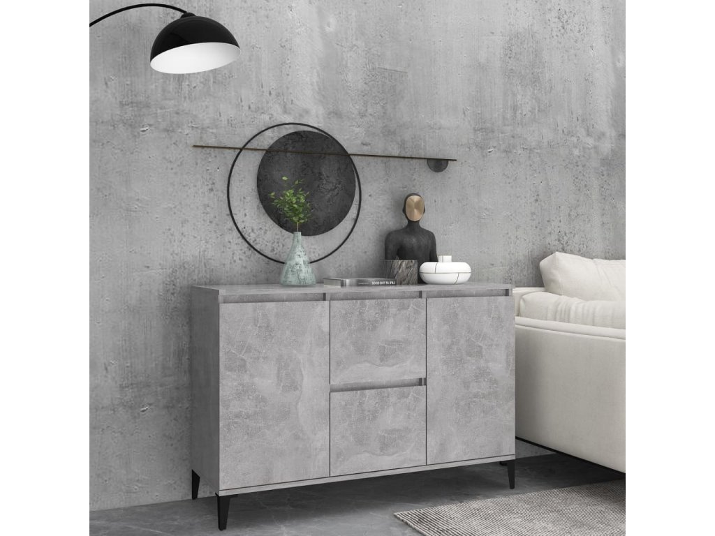 Bočná skrinka je dostatočne pevná a odolná, aby zaistila dlhodobú službu. Kovové nohy zaisťujú mimoriadnu stabilitu. Táto knižnica je vybavená 2 zásuvkami a 2 dverami, ktoré poskytujú dostatok úložného priestoru pre vaše položky. Na robustný vrch môžete tiež umiestniť ozdobné predmety a fotorámčeky. Úložnú skrinku je navyše možné ľahko čistiť vlhkou handričkou.
