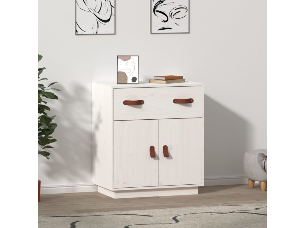 - Masívne borovicové drevo: Táto bočná skrinka je vyrobená z masívneho borovicového dreva. Masívne borovicové drevo je krásny prírodný materiál. Borovicové drevo má rovnú štruktúru a uzly dodávajú materiálu jeho typický rustikálny vzhľad.