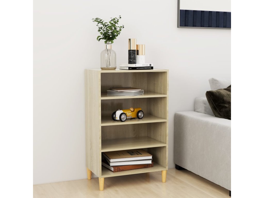 Táto skrinka na knihy je vyrobená z kompozitného dreva, vďaka čomu je pevná, trvácna a má dlhú životnosť. Drevené nohy jej dodávajú potrebnú stabilitu. Príručná skrinka má 4 police, ktoré poskytujú množstvo úložného priestoru. Na pevnú vrchnú dosku si môžete vystaviť ozdobné predmety, rámiky s fotkami či kvety v kvetináčoch. Úložná skrinka sa navyše dá ľahko očistiť navlhčenou handričkou.