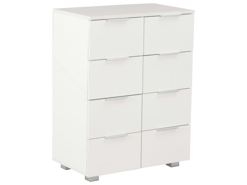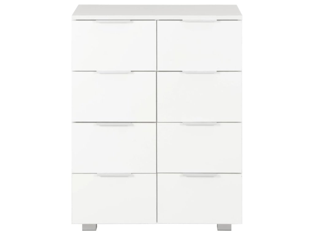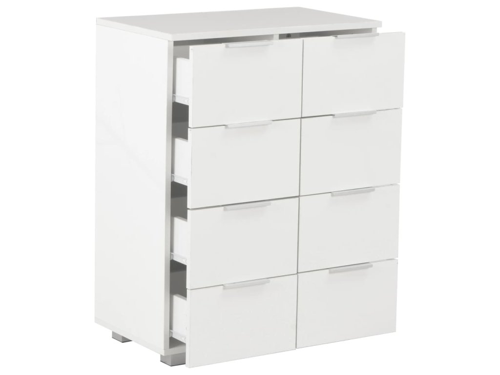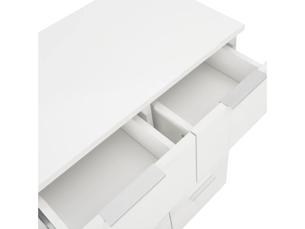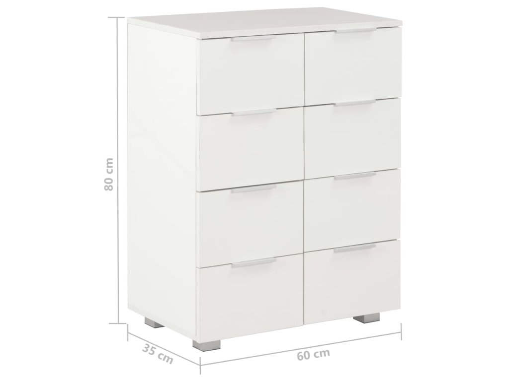 Táto skrinka so zásuvkami je vyrobená z kompozitného dreva s vysokým leskom, ktoré jej dodáva rafinovaný vzhľad a mimoriadnu stabilitu a trvácnosť. Komoda obsahuje 8 zásuviek, vďaka čomu poskytuje množstvo úložného priestoru na odkladanie rôznych predmetov, aby ste mali v izbe vždy čisto a poriadok. Táto úložná skrinka s vysokým leskom sa ľahko čistí.