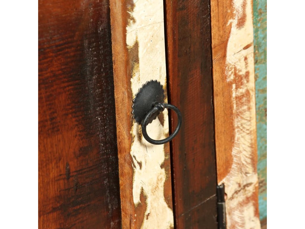 Úložná komoda je vyrobená z masívneho recyklovaného dreva, čo znamená, že má vlastnosti rôznych druhov drevín ako je mahagónové, teakové, mangovníkové, akáciové, trvdé drevo, atď. Recyklované drevo je pevné, stabilné, odolné a krásne. Zaobstaranie si tohto nábytku do svojej domácnosti bude vyjadrením vášho záujmu o ochranu prírodných zdrojov, životného prostredia a trvalo udržateľný rozvoj. Každý kúsok tohto nábytku je jedinečný a trochu odlišný od ostatných kusov. Znaky opotrebenia dodávajú každému kusu nábytku jedinečný vzhľad a atraktívny vintage štýl.