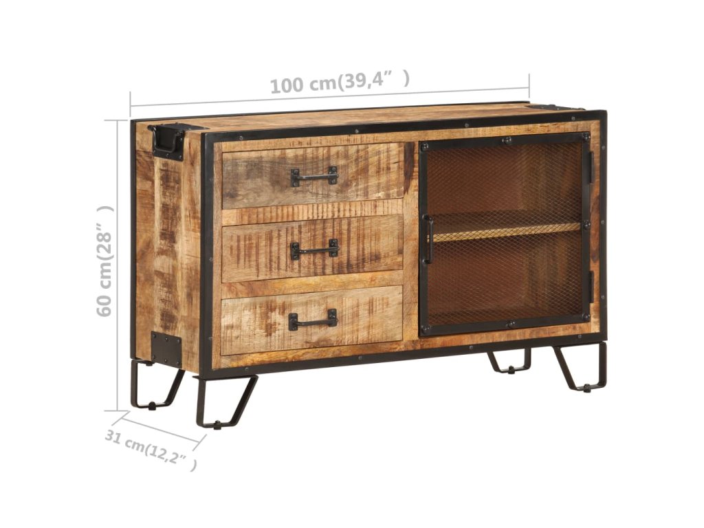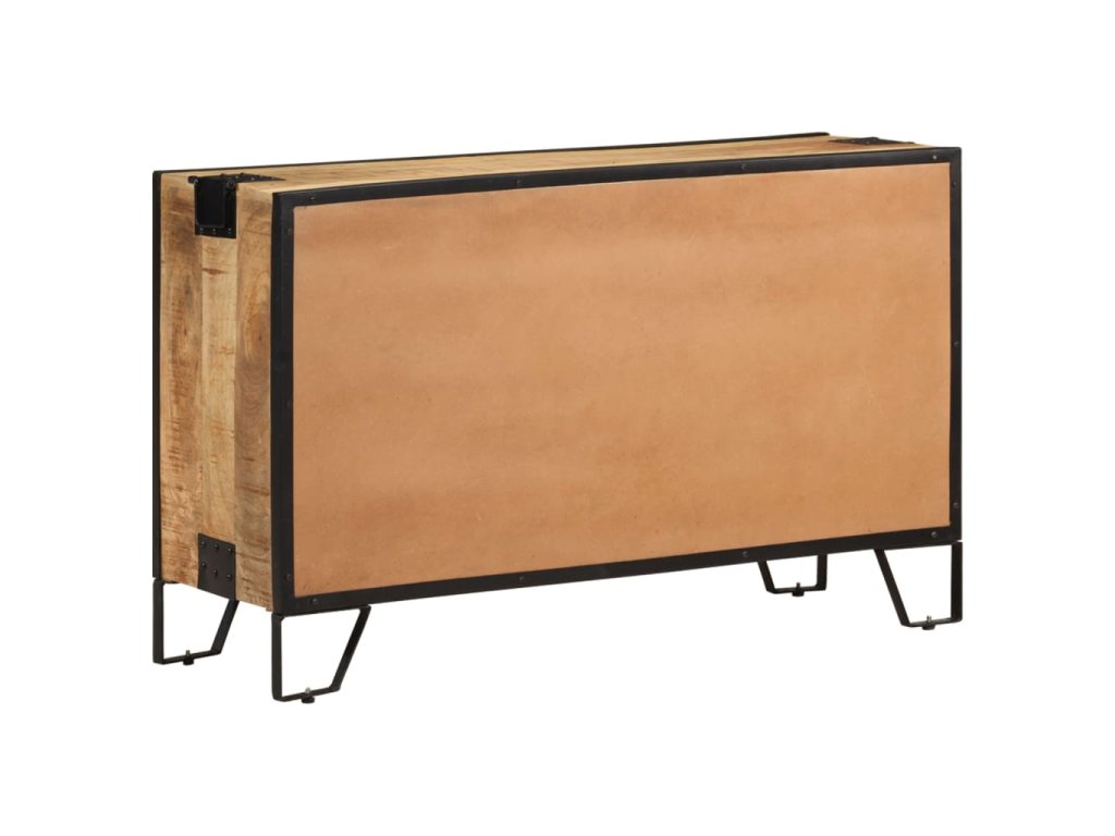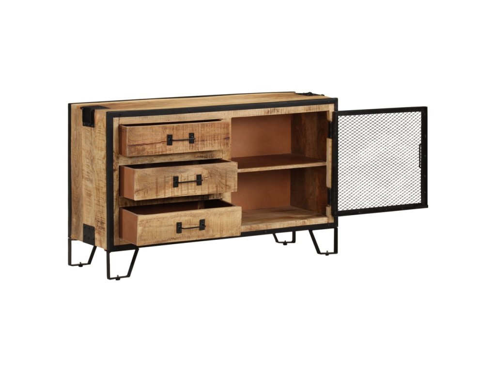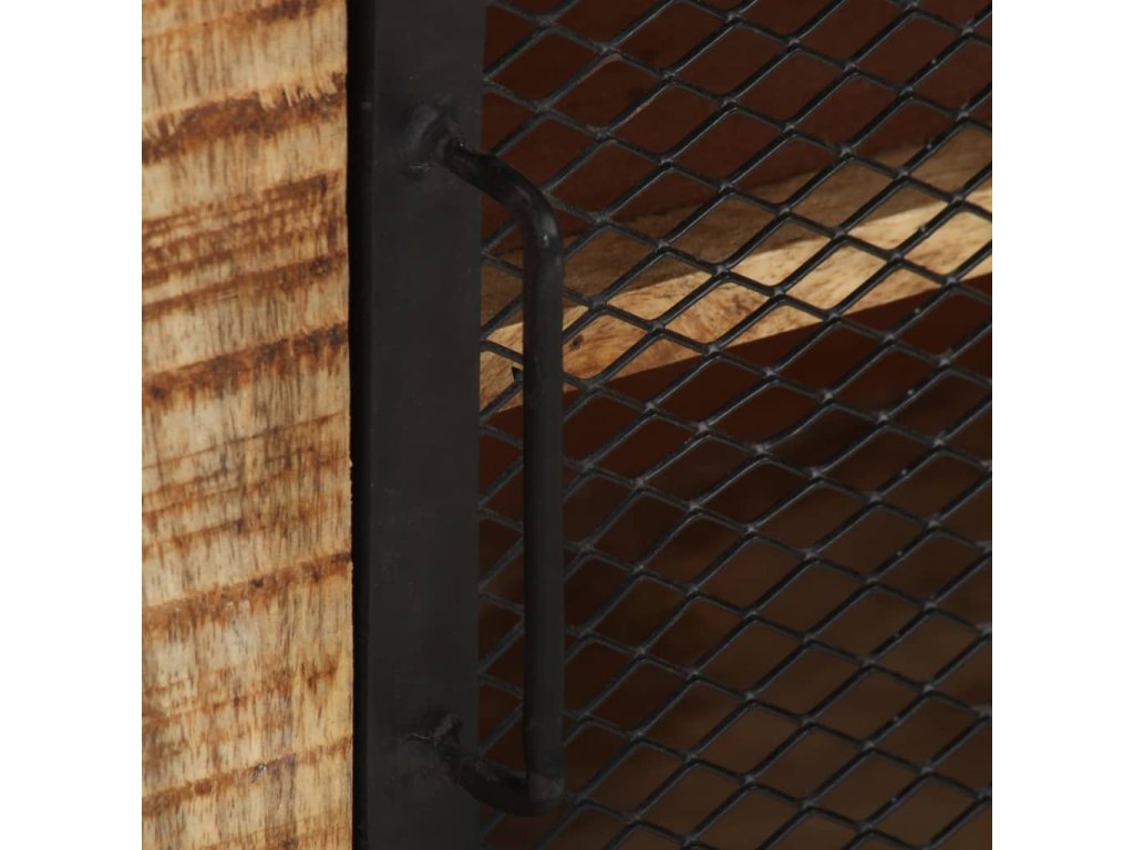 Úložná skrinka je ručne vyrobená z ocele a surového mangovníkového masívu, vďaka čomu je pevná a stabilná. Vďaka remeselnému spracovaniu a krásnej štruktúre dreva je každý kus tohto nábytku jedinečný a mierne odlišný od ostatných. Okrem toho má táto príručná skrinka dostatok úložného priestoru na úhľadné uloženie vašich potrieb na dosah.