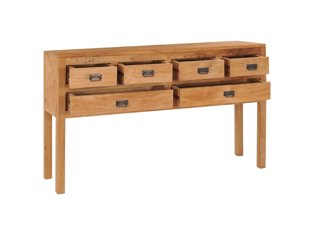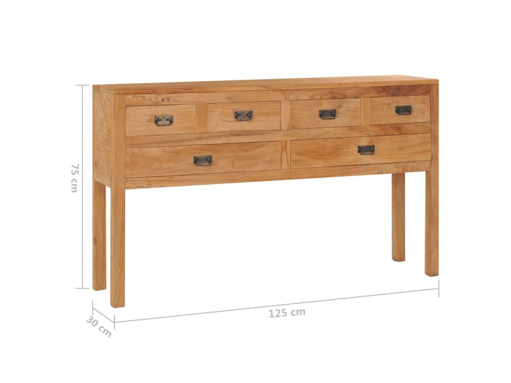 Táto komoda je vyrobená z masívneho teakového dreva a poskytuje pevnú a odolnú základňu. Povrchová úprava z prírodného oleja zaisťuje hladký povrch a vďaka nej sa komoda aj ľahko čistí a dobre udržiava. Šesť zásuviek poskytuje dostatok priestoru na uloženie predmetov, ktoré ostanú čisté a pekne uložené. Alternatívne môžete túto komodu použiť aj ako konzolový stolík, kredenc alebo úložnú truhlicu.