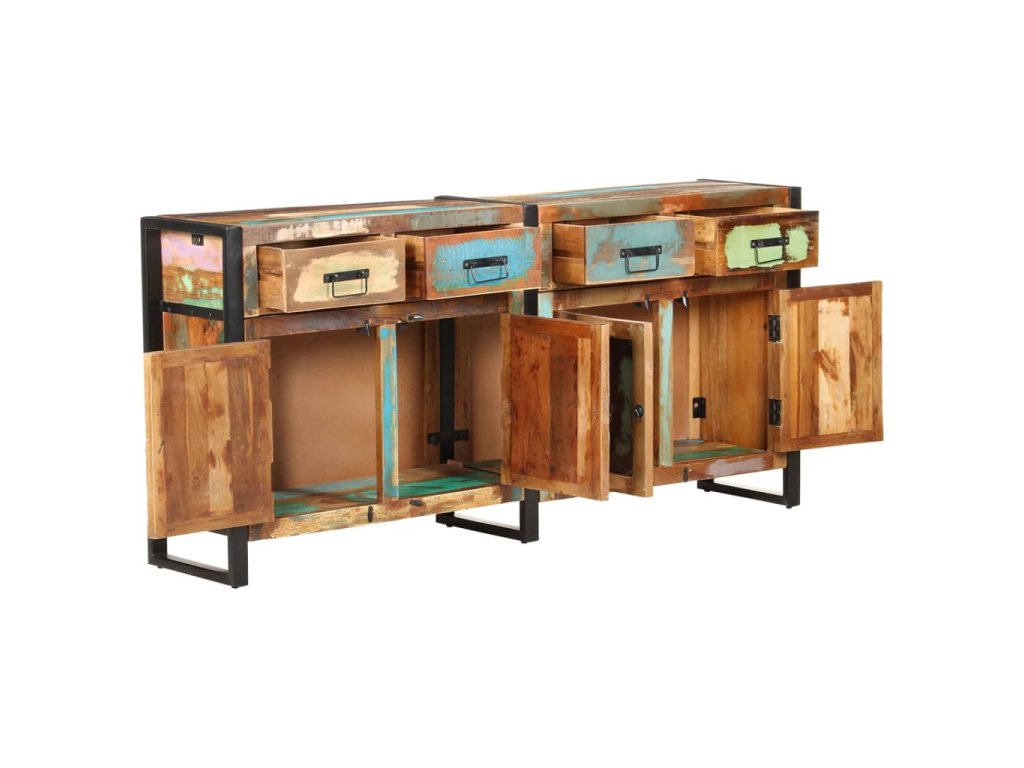 - Solid reclaimed wood: This storage cabinet is made of reclaimed wood that has been sourced from joists, floors and support beams from old buildings being demolished, and can consist of different types of wood like pine, teak, beech, oak, cedar, mango wood, acacia, etc. This means the reclaimed wood retains the characteristics of these different types of wood. Reclaimed wood is already aged, weathered and dried, so it doesn't shrink or bend.