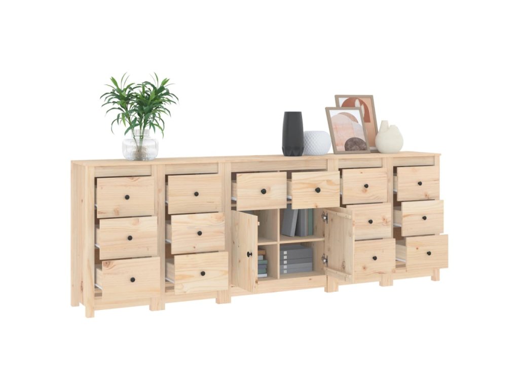 - Masívne borovicové drevo: Masívne borovicové drevo je krásny prírodný materiál. Borovicové drevo má rovnú štruktúru a uzly dodávajú materiálu jeho typický rustikálny vzhľad.