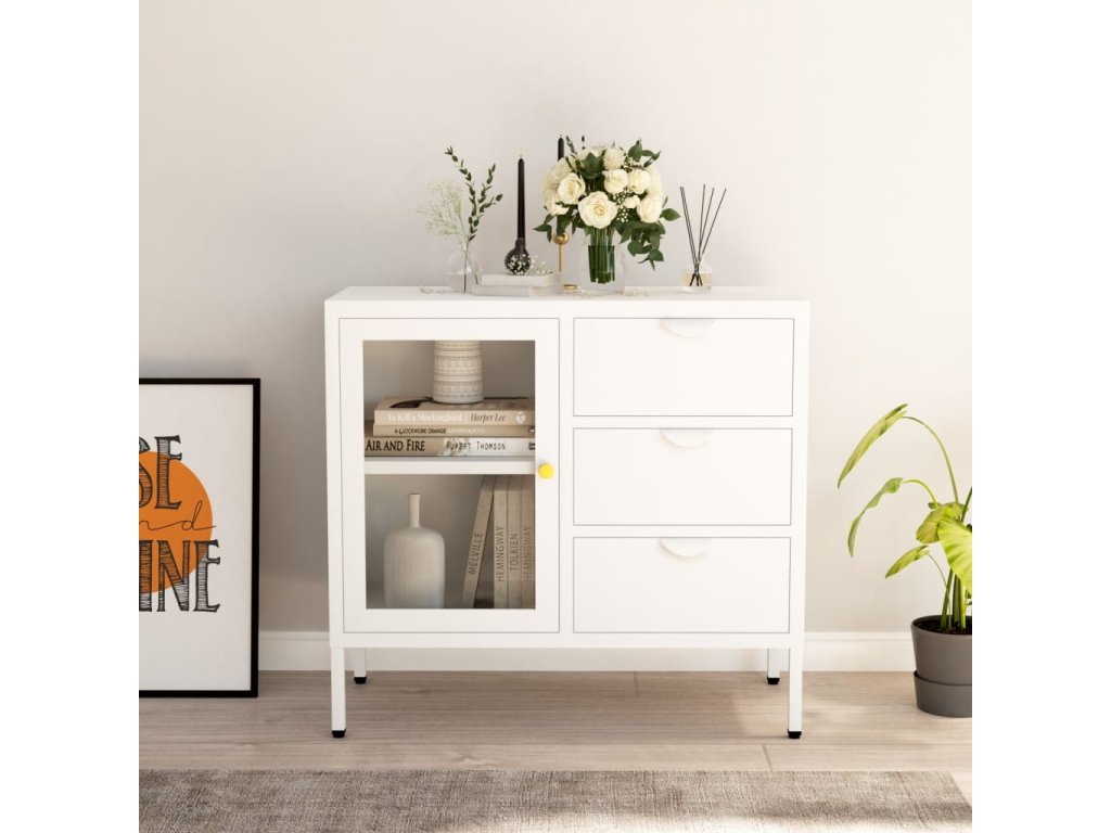 Konštrukcia tejto úložnej skrinky je vyrobená z ocele a tvrdeného skla, a je pevná a odolná, čo zaručuje dlhoročné používanie. Skrinka má 1 nastaviteľnú policu a 3 zásuvky, ktoré poskytujú dostatok úložného priestoru na usporiadanie vašich DVD, multimediálnych zariadení, kníh a drobných nevyhnutných predmetov na dosah ruky. Zásuvky s 3 sekciami s guľôčkovými ložiskami zabezpečujú hladké otváranie a zatváranie. Okrem toho sa ľahko čistí vlhkou handričkou.